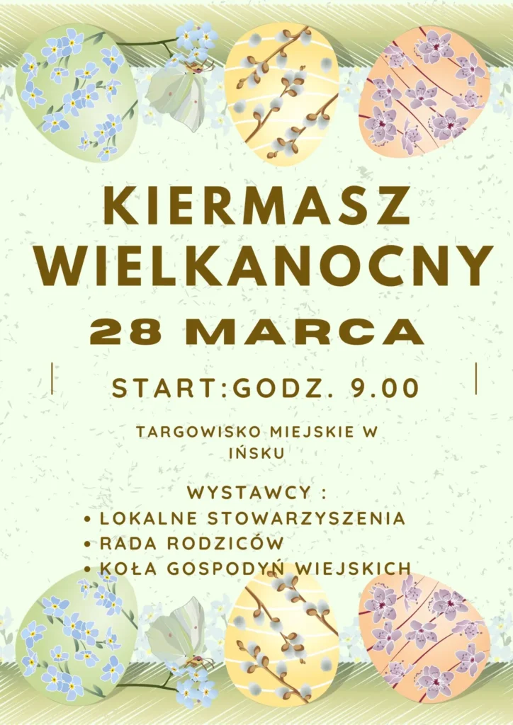 Ińskie Centrum Kultury zaprasza mieszkańców oraz gości do udziału w kiermaszu wielkanocnym, który odbędzie się w sobotę, 28 marca od godz. 9 na Targowisku Miejskim w Ińsku.