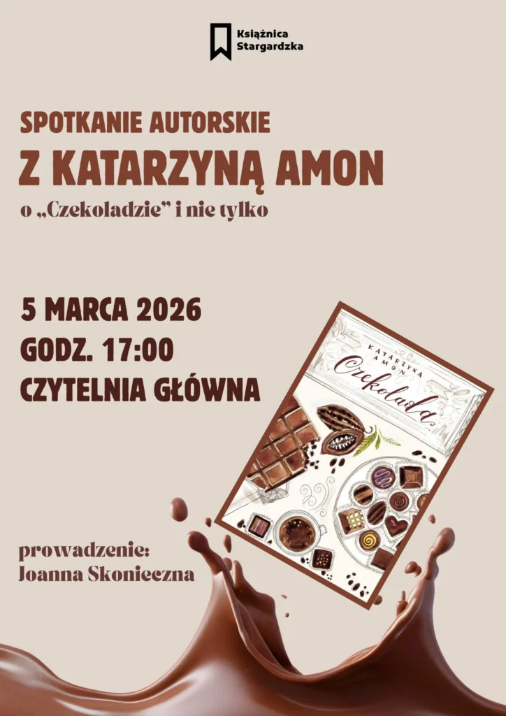 Książnica Stargardzka zaprasza na spotkanie autorskie z Katarzyną Amon, autorką książki „Czekolada”, które odbędzie się w najbliższy czwartek, 5 marca o godz. 17, w Czytelni Głównej.