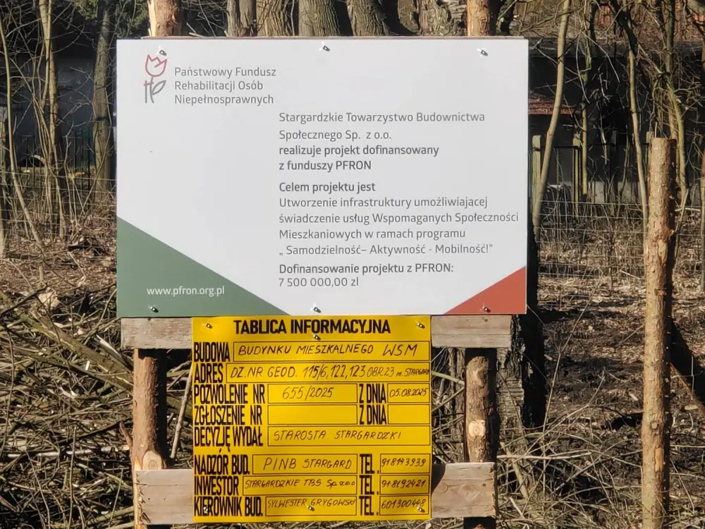 Stargardzkie Towarzystwo Budownictwa Społecznego otrzymało decyzję o przyznaniu dofinansowania w wysokości 7 500 000 zł ze środków Państwowego Funduszu Rehabilitacji Osób Niepełnosprawnych (PFRON). Kwota ta zostanie przeznaczona na stworzenie infrastruktury umożliwiającej świadczenie usługi Wspomaganej Społeczności Mieszkaniowej (WSM).