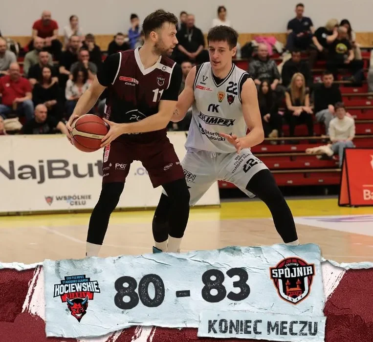 W połowie czwartej kwarty miejscowi wyrównali. Od tego momentu już do samego końca wynik zmieniał się na tablicy jak w kalejdoskopie. Na 13 sekund przed ostatnią w tym meczu syreną Spójnia odskoczyła na trzy punkty. Gospodarze, aby doprowadzić do dogrywki musieli trafić za „3”. Spudłowali jednak i z wygranej mogli się cieszyć biało-bordowi.